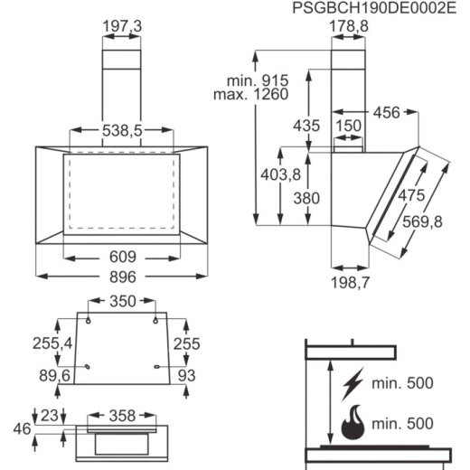 - Dimensions: 915-1260x896x456 (HxWxD) (mm)