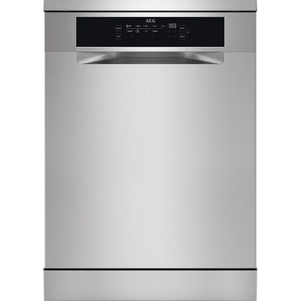 The AEG FFB76727PM 7000 freestanding GlassCare® dishwasher is available in a sleek stainless steel finish, and features clever AutoDry open-door drying, the SatelliteClean® spray arm for maximum coverage, the versatile MaxiFlex drawer, and a large 14 place setting capacity.