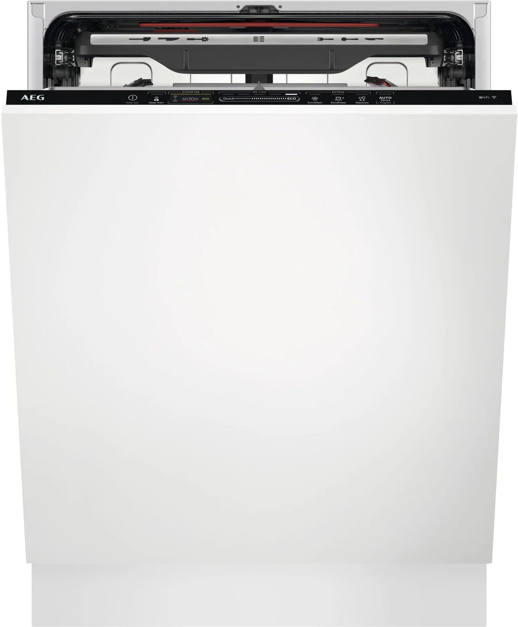 The AEG FSE77738P 60 cm fully integrated dishwasher combines cutting-edge technology with energy efficiency. With a quiet 42 dB operation and A energy rating, it offers room for 14 place settings and features a MaxiFlex cutlery drawer, GlassCare system, and SatelliteClean spray arm for spotless results. Its Wi-Fi connectivity and QuickSelect with EcoMeter provide easy, eco-friendly control. Enjoy the convenience of a digital display with time beam, auto door opening, adjustable racking, and multiple wash programmes including Quick 30 min and Auto Sense. Ideal for modern homes seeking smart, quiet, and thorough dish care.