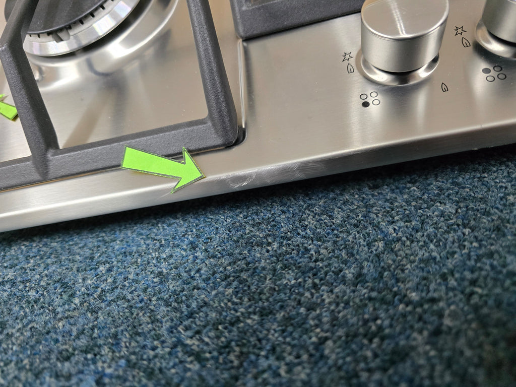 This graded AEG HG654351SM Gas Hob is an ex-display appliance. It has some marks and blemishes to the stainless steel surface that does not effect performance. Please see images.