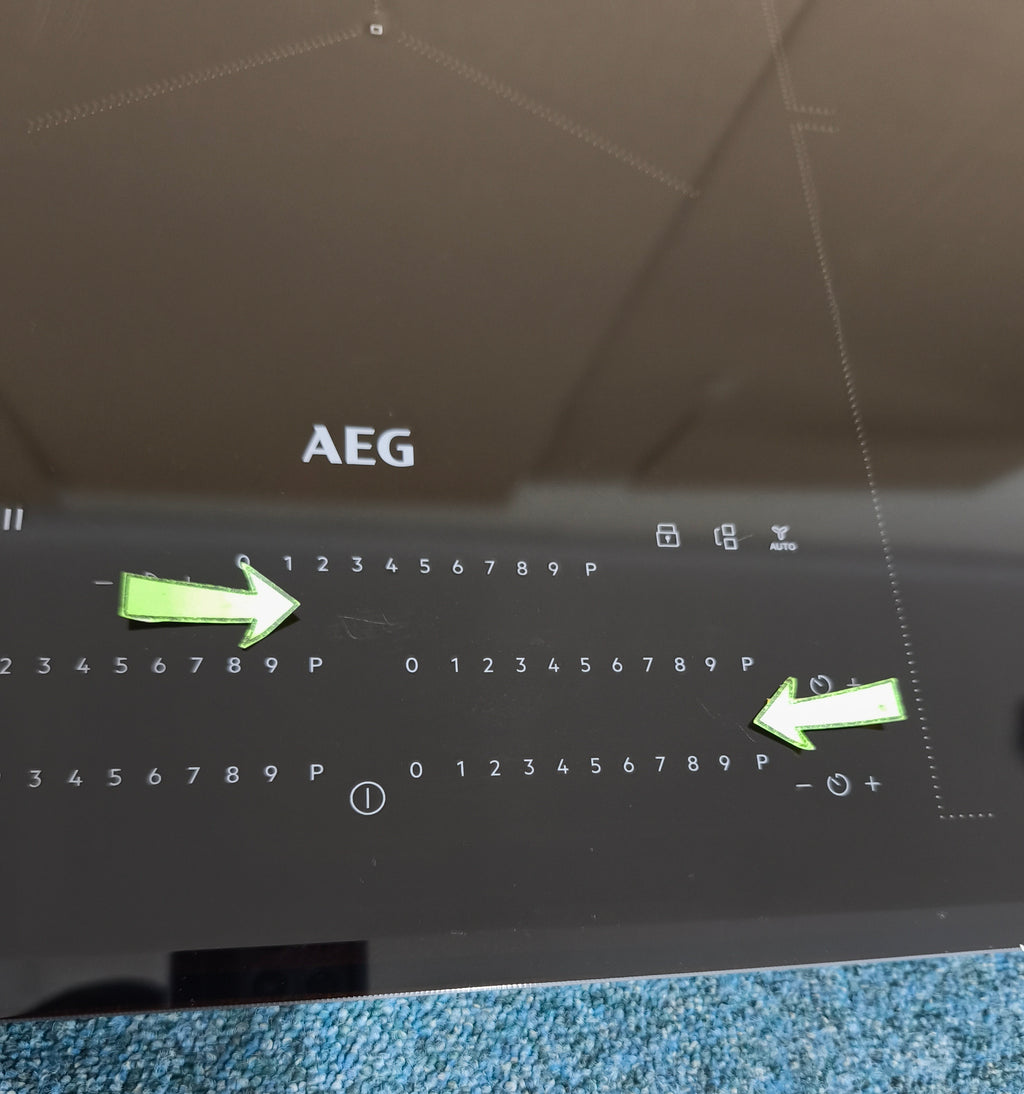 This graded AEG IKE85751FB 5 Zone 78cm Multibridge Induction Hob is brand new with minor cosmetic blemishing to the hob surface due to being on display in our showroom. Please see images