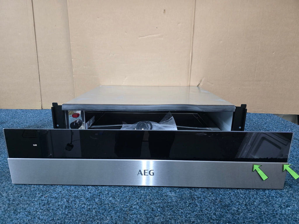 This AEG KDK911422M 14cm Push To Open Warming Drawer is brand new with a very slight cosmetic blemishing to the stainless steel trim on the drawer and the top casing that does not affect performance. Please see images.
