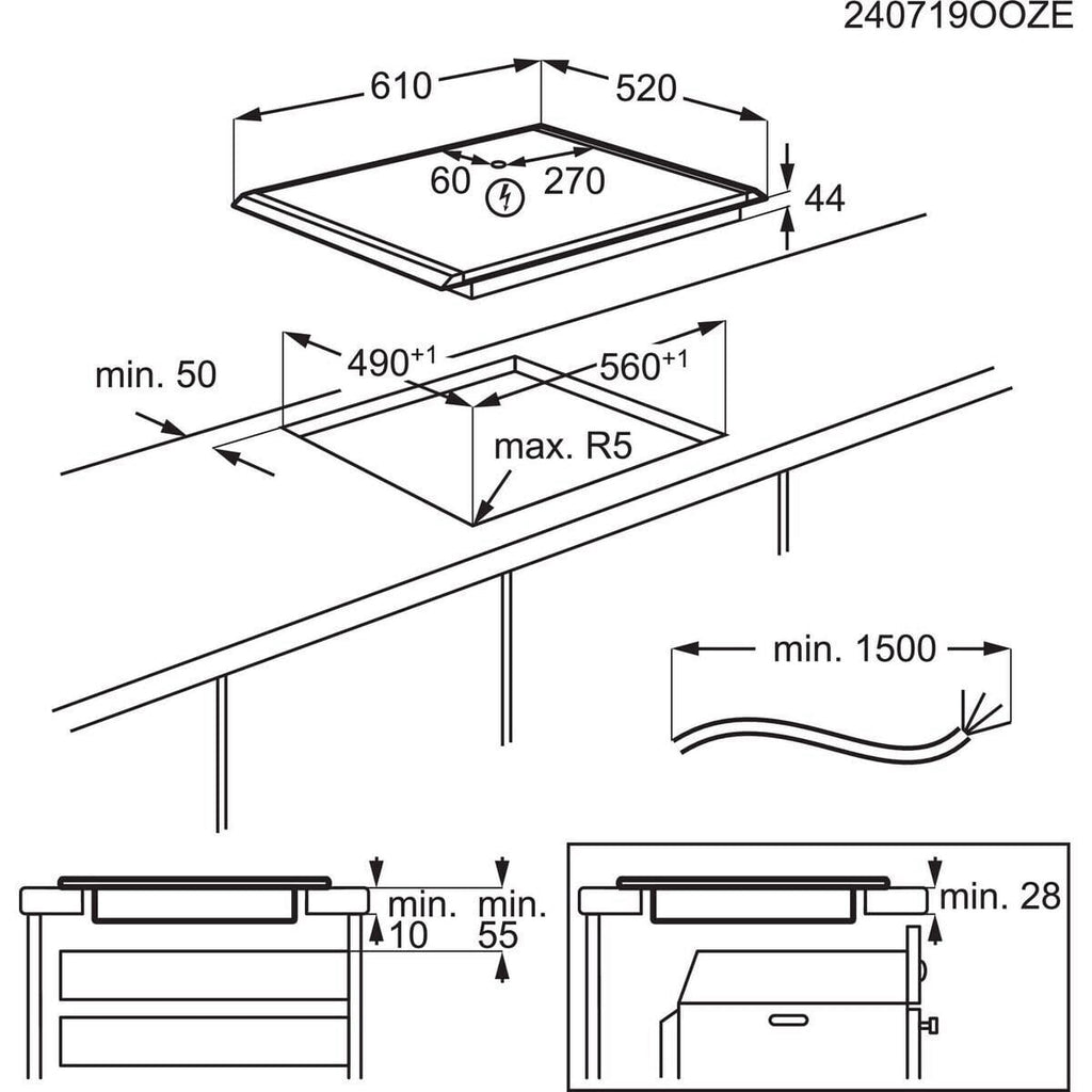 Built-in Dimensions (mm) (HxWxD): 44x560x490