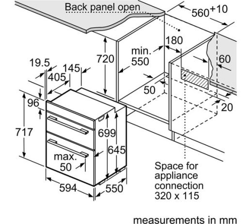 Dust off your apron and get your oven mitts ready with this stainless steel built under electric double oven from Bosch. The main multifunctional oven gives you a range of cooking options to help you perfect every recipe. It also has a second conventional oven with a handy grill setting, which is great for adding a beautifully golden finish to your dishes. With the clever 3D Hot Air system, heat is evenly circulated inside to make sure your meals are thoroughly cooked on every shelf – so every joint of meat will be lovely and juicy. The EcoClean Direct interior absorbs greasy splatters and burns them away as you cook, so when you’re finished creating your masterpiece, it will only need a quick wipe. This model is designed to fit under a worktop.