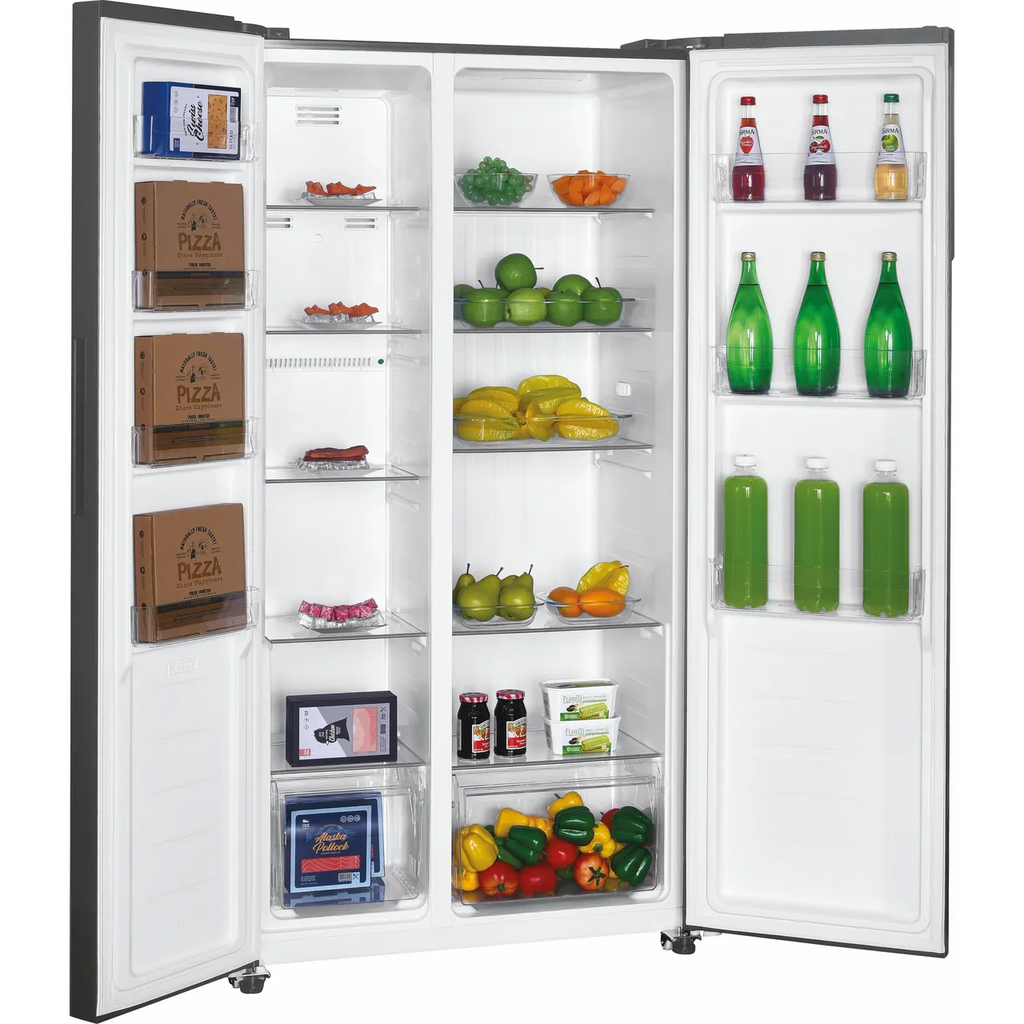 This graded Candy American Fridge Freezer is brand new with slightly tatty packaging.