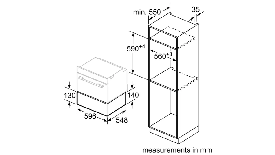 Dimensions W: 596mm x H: 130mm x D: 535mm
